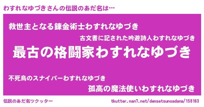 | 意味不明あだ名 | 『住所不定無職わすれなゆづき(11歳)』 |