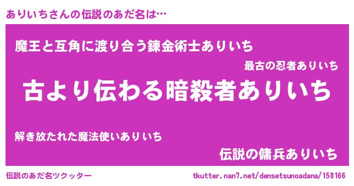 | 男性向けラノベタイトル風あだ名 | 『ありいちという概念が存在しない退屈な世界 』 |