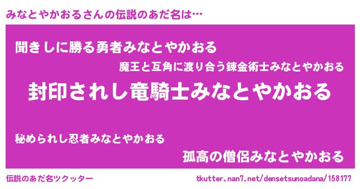 | ヘコむあだ名 | 『みなにー』『みなとやかおる(遠い目)』 |