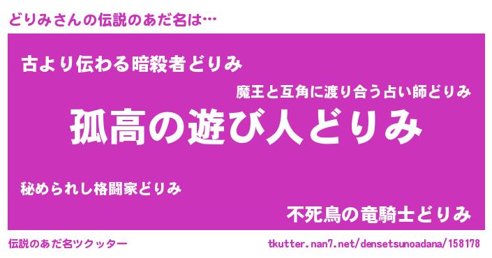 | ヒーロー風カッコイイあだ名 | 『暗黒騎士ドリ』『ネオドリミ』 |
