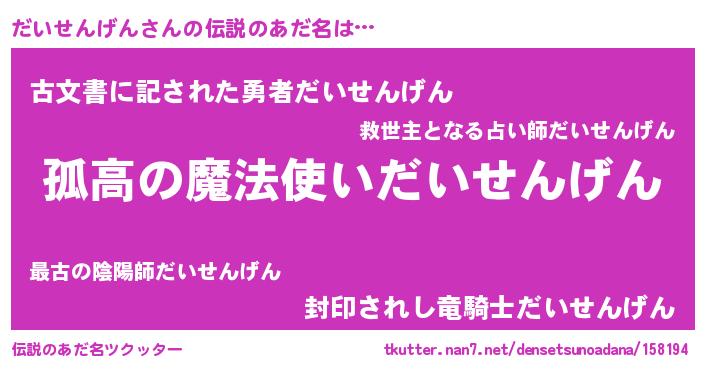 | 胡散臭い通販商品みたいなあだ名 | 『信頼と実績のサプリメント…その名も「だいせんげん」』 |