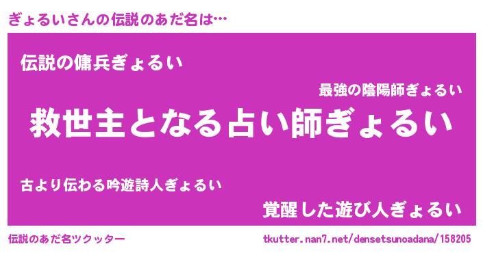 | 男性向けラノベタイトル風あだ名 | 『ぎょるい~年齢イコール彼女いない歴の魔法使い~』 |