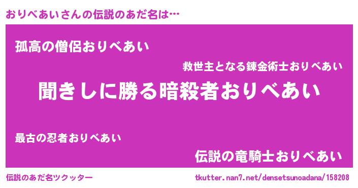 | 意味不明あだ名 | 『永久保存おりべあい』 |