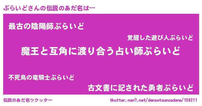 | ヒーロー風カッコイイあだ名 | 『愛の使者ぷらいど』『最強戦士プライド』 |
