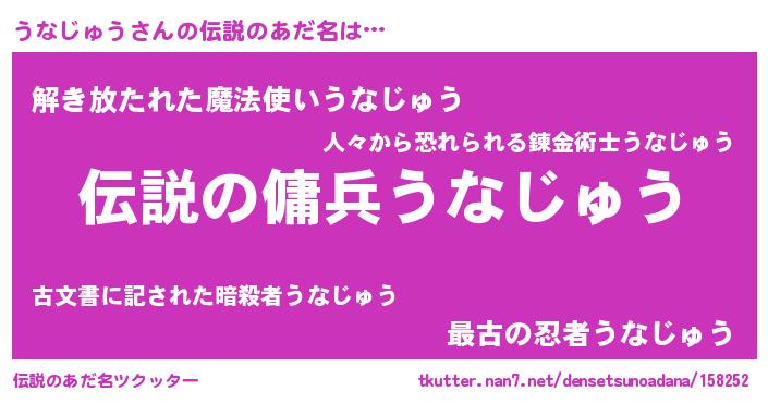 | ヒーロー風カッコイイあだ名 | 『スーパーウナジュウ』『仮面ウナダー』 |
