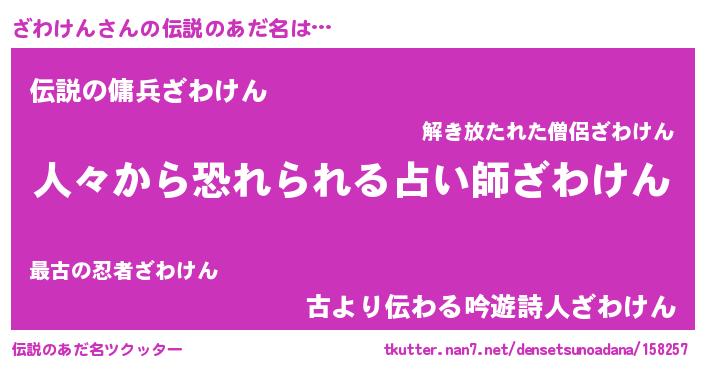 | ヒーロー風カッコイイあだ名 | 『正義の使者ざわけん』『ネオザワケン』 |