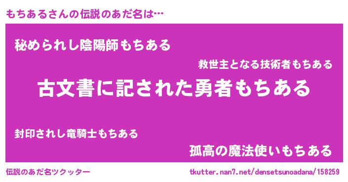 | ヒーロー風カッコイイあだ名 | 『ネオモチアル』『ウルトラもちあるマン』 |