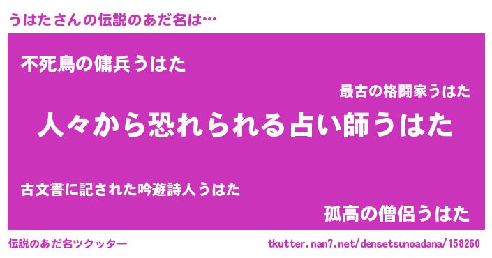 | ヒーロー風カッコイイあだ名 | 『正義の使者うはた』『スーパーウハタ』 |