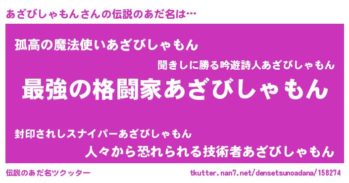 | 意味不明あだ名 | 『あざびしゃもんフォーエバー』 |