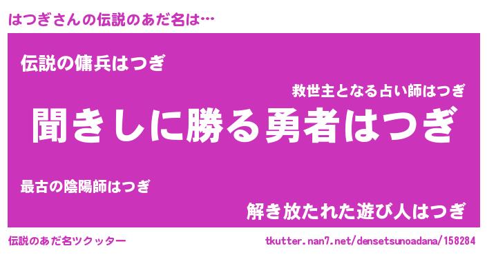 | 男性向けラノベタイトル風あだ名 | 『はつぎという概念が存在しない退屈な世界 』 |