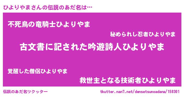 | 意味不明あだ名 | 『永久保存ひよりやま』『自称ひよりやま』 |