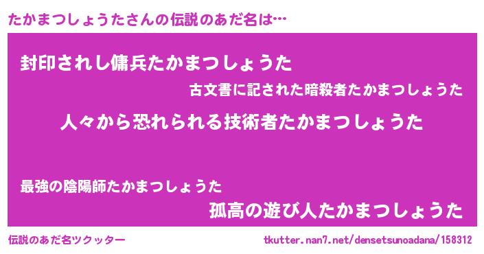 | 意味不明あだ名 | 『住所不定無職たかまつしょうた(13歳)』 |
