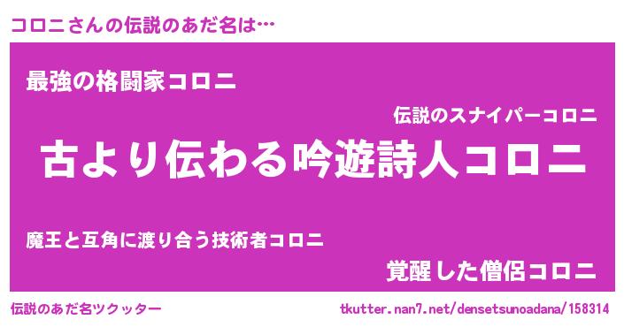 | ファンタジー風あだ名 | 『コロディッシュ』『エターナルコロニー』 |