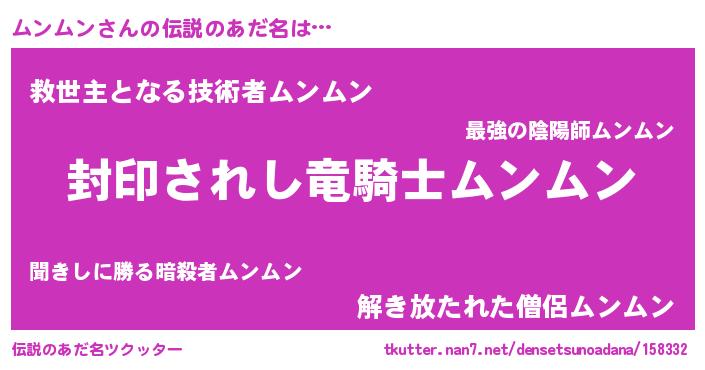 | ヒーロー風カッコイイあだ名 | 『究極戦士ムンムン』『スーパームンムン』 |
