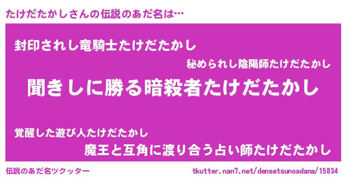 | 意味不明あだ名 | 『永久保存たけだたかし』 |