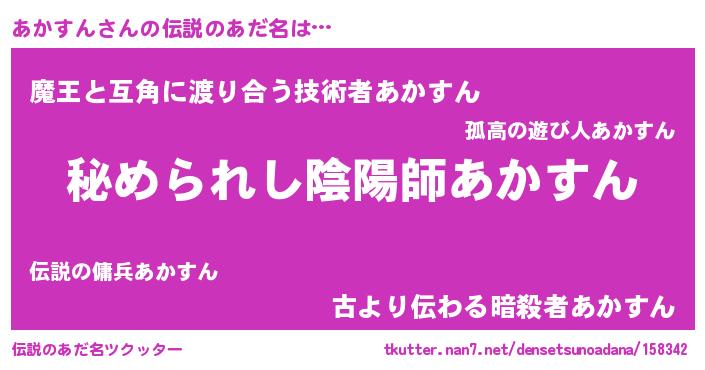 | ヒーロー風カッコイイあだ名 | 『ウルトラあかすんマン』『ネオアカスン』 |