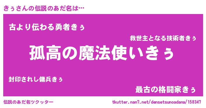 | 男性向けラノベタイトル風あだ名 | 『魔弾の王ときぅ』 |