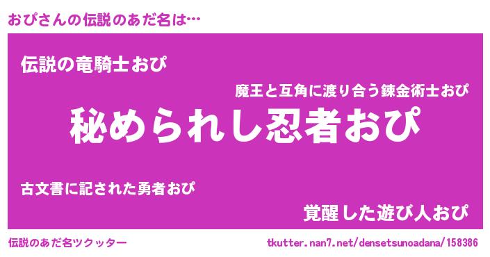 | ヒーロー風カッコイイあだ名 | 『ウルトラおぴマン』『仮面オピダー』 |