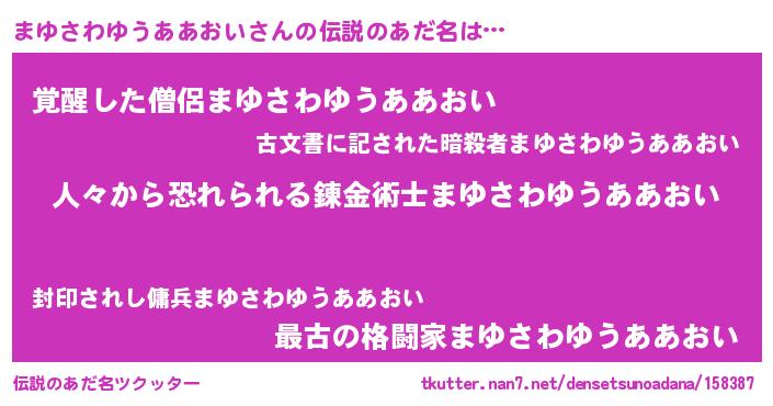 | ヒーロー風カッコイイあだ名 | 『正義の使者まゆさわゆうああおい』 |