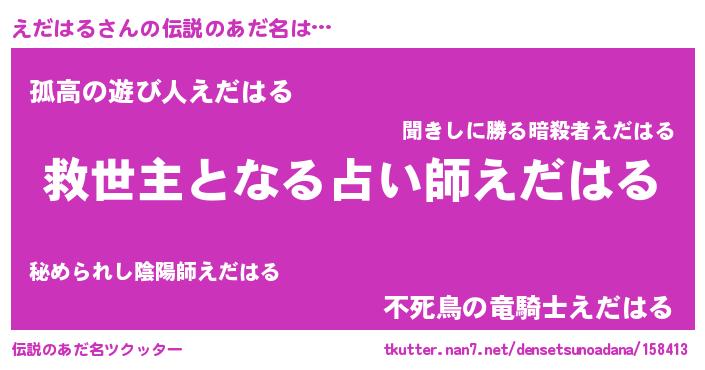 | ヒーロー風カッコイイあだ名 | 『究極戦士エダハル』『銀牙騎士エダ』 |