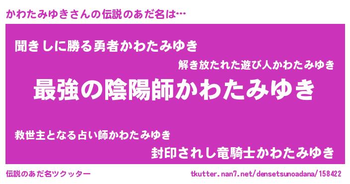 | 肩書あだ名 | 『かわたみゆき国家主席』 |