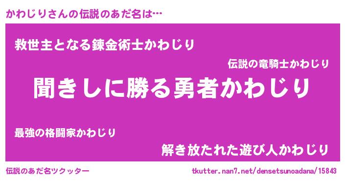 | 男性向けラノベタイトル風あだ名 | 『カワジリスレイヤー』 |