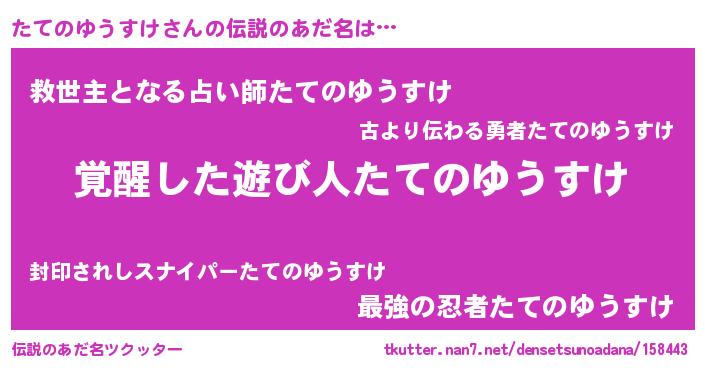 | 意味不明あだ名 | 『住所不定無職たてのゆうすけ(93歳)』 |