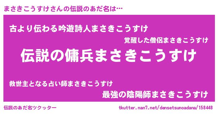 | 女子向けラノベタイトル風あだ名 | 『(仮)まさきこうすけのやんごとなき事情』 |