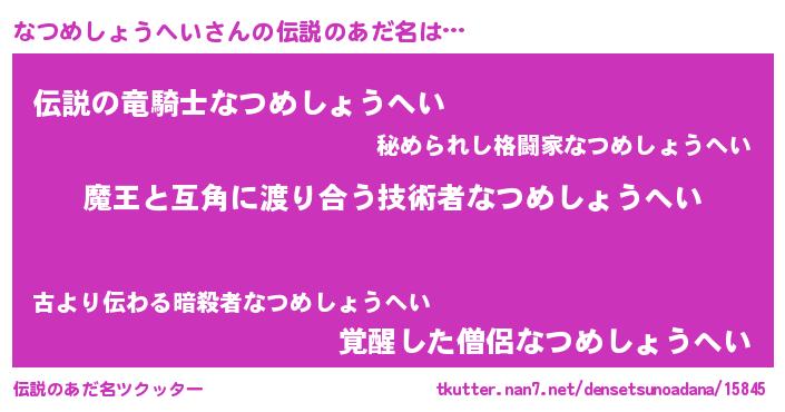 | ヒーロー風カッコイイあだ名 | 『愛の使者なつめしょうへい』 |