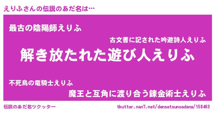 | 男性向けラノベタイトル風あだ名 | 『転生したらえりふだった件』 |