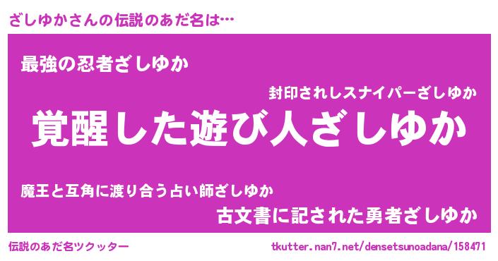| 意味不明あだ名 | 『住所不定無職ざしゆか(98歳)』 |