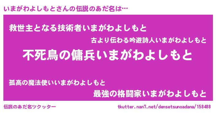 | 男性向けラノベタイトル風あだ名 | 『いまがわよしもとの憂鬱』 |