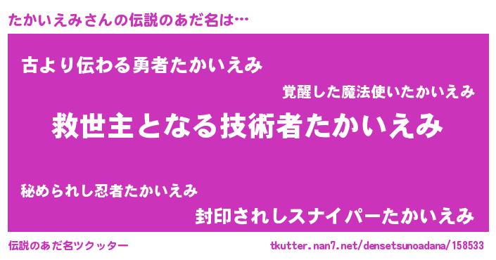 | ヘコむあだ名 | 『たかいえみ(小並感)』『たかもー』 |