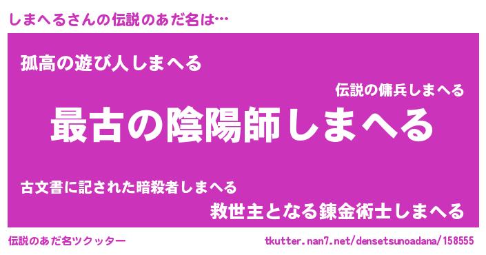 | 男性向けラノベタイトル風あだ名 | 『魔法科高校のしまへる』 |