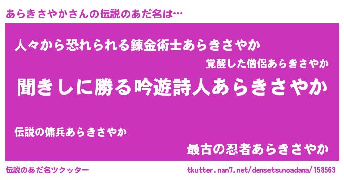 | 男性向けラノベタイトル風あだ名 | 『あらきさやかという概念が存在しない退屈な世界 』 |