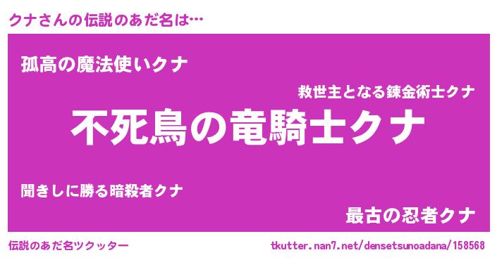 | ヒーロー風カッコイイあだ名 | 『スーパークナ』『暗黒騎士クナ』 |