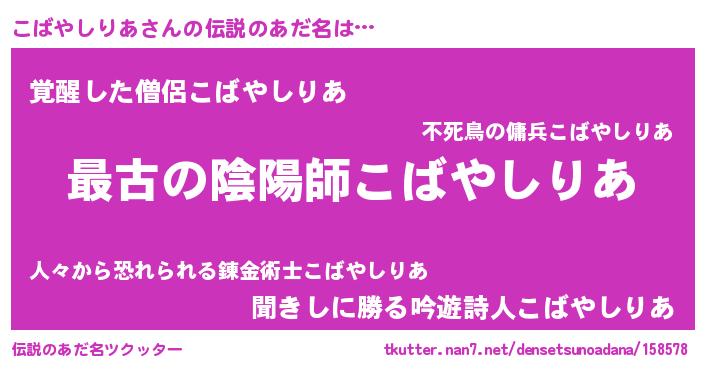 | 男性向けラノベタイトル風あだ名 | 『こばやしりあに滅ぼされるだけの簡単なお仕事です』 |