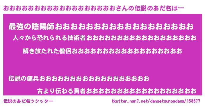 | 女子向けラノベタイトル風あだ名 | 『おおおおおおおおおおおおおおおおおおの卵を拾いまして』 |