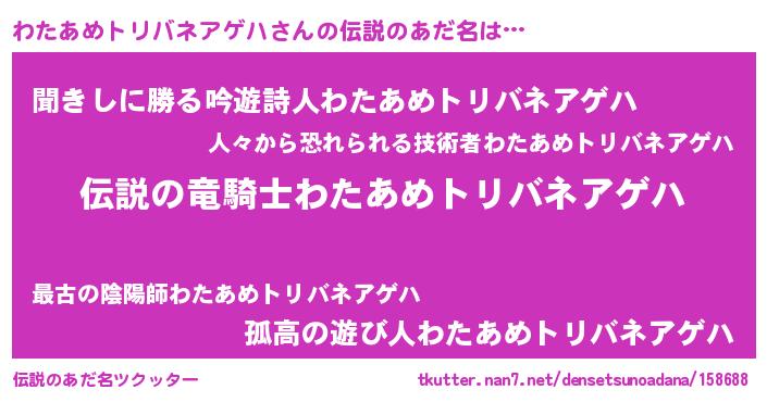| ヒーロー風カッコイイあだ名 | 『超時空戦士ワタアメトリバネアゲハ』 |