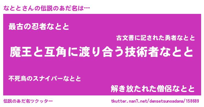 | ヒーロー風カッコイイあだ名 | 『友情の使者なとと』『銀牙騎士ナト』 |