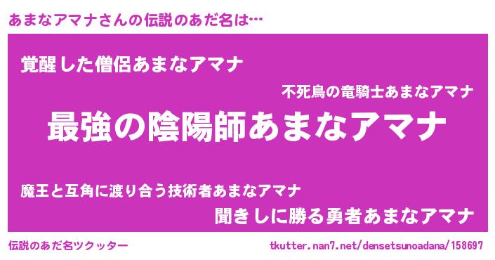 | 意味不明あだ名 | 『住所不定無職あまなアマナ(86歳)』 |