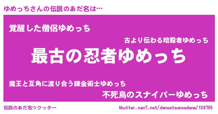 | 意味不明あだ名 | 『もやし科ゆめっち属』『自称ゆめっち』 |