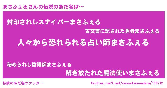 | 男性向けラノベタイトル風あだ名 | 『魔法科高校のまさふぇる』 |