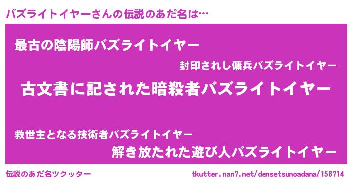 | ヒーロー風カッコイイあだ名 | 『ネオバズライトイヤー』『仮面バズダー』 |