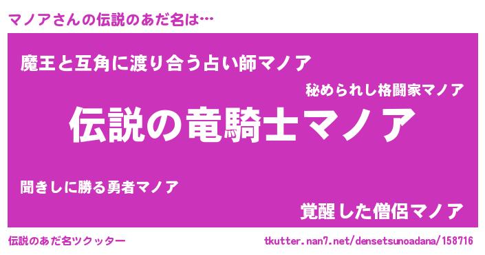 | 女子向けラノベタイトル風あだ名 | 『マノアなんてお断りですっ。』 |