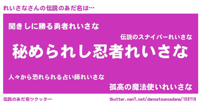 | 意味不明あだ名 | 『れいさなフォーエバー』『自称れいさな』 |