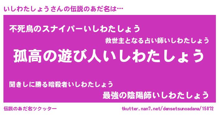 | 女子向けラノベタイトル風あだ名 | 『いしわたしょうは平凡を望む』 |