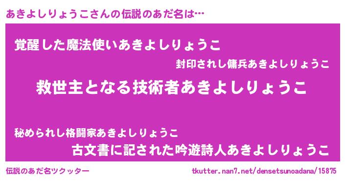 | ヒーロー風カッコイイあだ名 | 『慈愛の使者あきよしりょうこ』 |