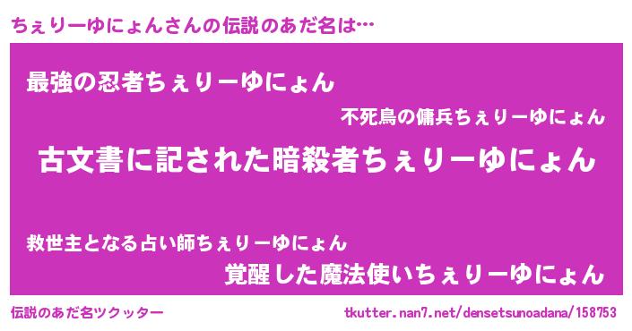 | 意味不明あだ名 | 『永久保存ちぇりーゆにょん』 |