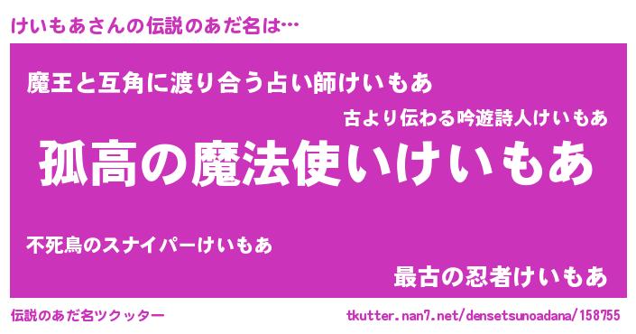 | 意味不明あだ名 | 『住所不定無職けいもあ(13歳)』 |